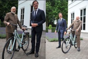 डच प्रधानमंत्री मार्क रूटे के साथ प्रधानमंत्री नरेंद्र मोदी ( आप भी चलाएं साइकिल…बड़े लोग दिखावा के लिए ही सही लेकिन साइकिल चला चुके हैं)
